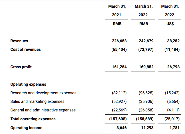 多知网6月21日消息,科技益智产品企业洪恩(NYSE:IH)今日公布截至2022年3月31日止的2022财年第一季度未经审计财务业绩。营收2.427亿元,同比增长7.1%;净利润为1310万元,同比增长83.6%。