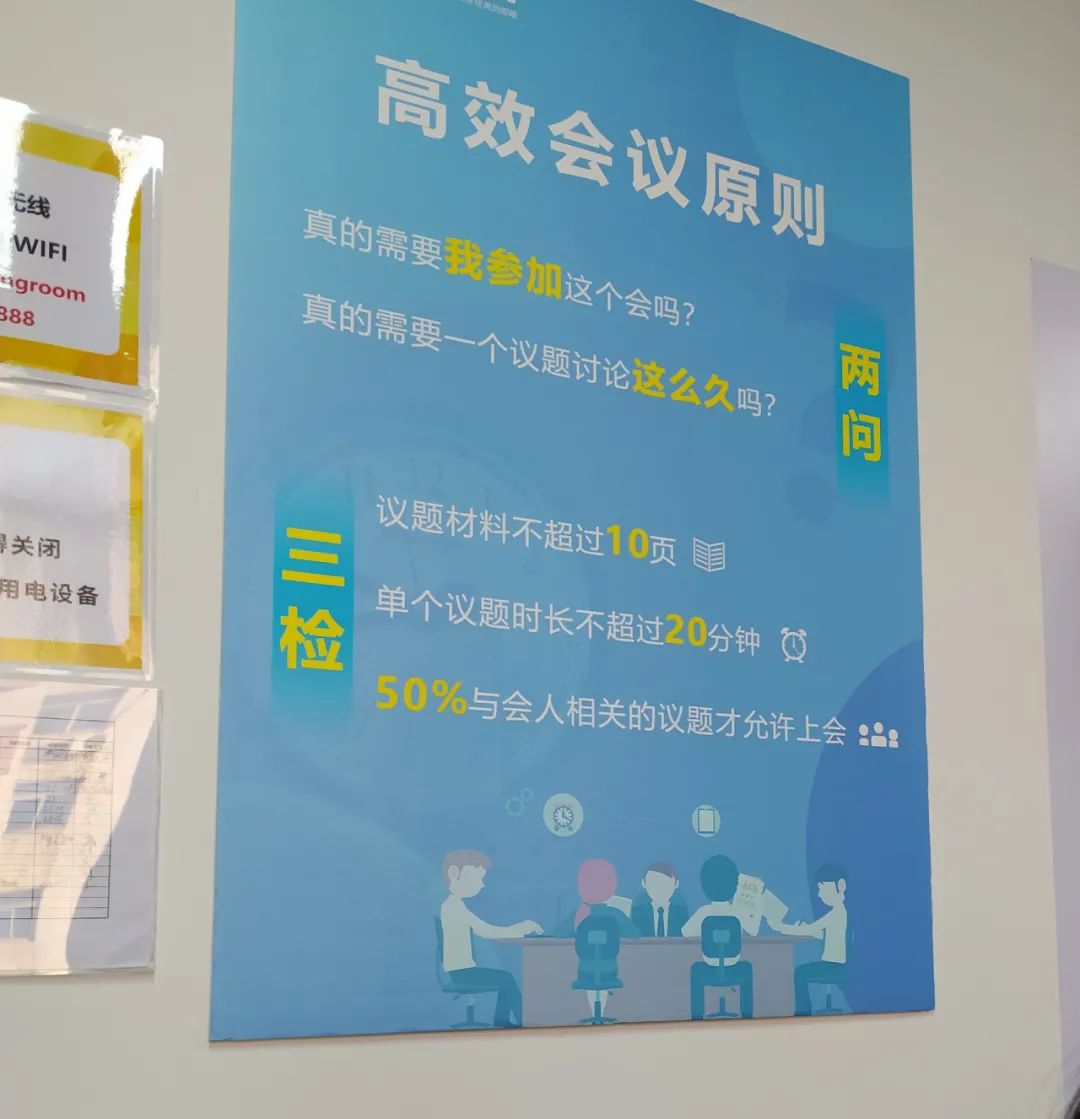 (六一教育会议室墙上鼓励高效会议的提示语)