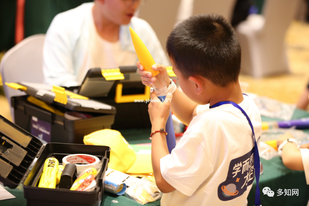 (学而思学员组装火箭模型)