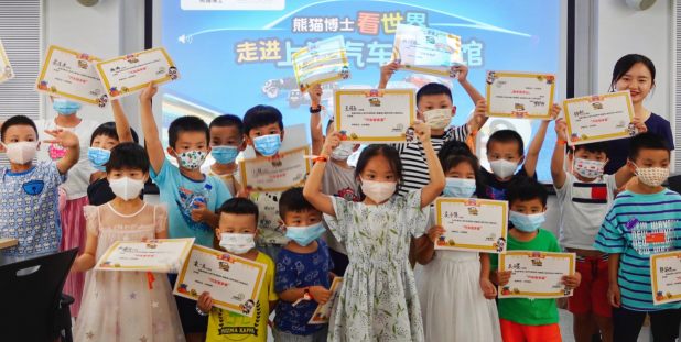 活动当天,在上海汽车博物馆内,孩子们和熊猫博士一起参观了博物馆,通过熊猫博士的情景动画和互动问答,了解了许多汽车有关的知识。