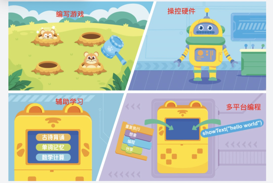 除此之外,这门课还会教孩子用「掌上学习机」,进行编程学习。