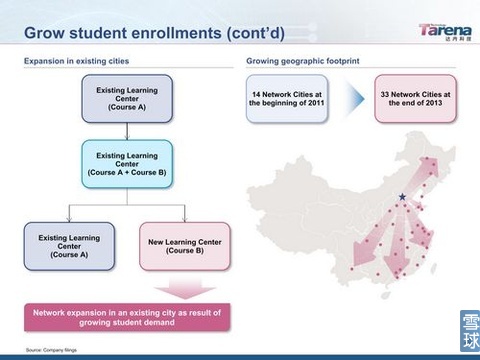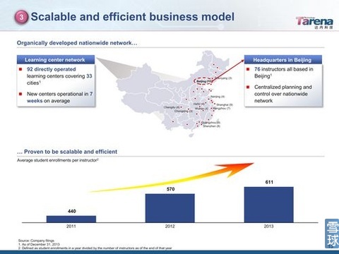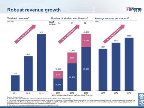 学员数从2011年的16282增长至2013年的46450,复合增长率68.9%(其中社会渠道招生的比例逐年提升);