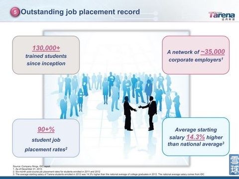 根据IDC的数据,2013年的中国职业培训的市场规模是675亿人民币,其中IT培训的份额约11.4%(77亿人民币),达内 有其中8.3%的市场份额;