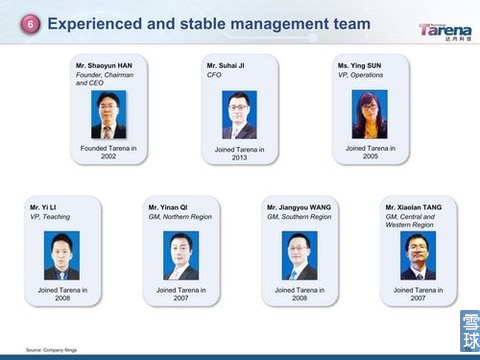 CEO是公司创始人韩少云;两个VP,孙莹负责运营,2006年加入;李翊负责技术,2008年加入;齐一楠是北方校区总经理,2007年加入;王江有是南方校区总经理,2008年加入;唐晓澜是西部校区总经理,2007年加入。几个高管都是在达内待过多年的老兵。