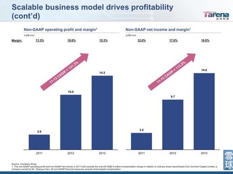 净营收从2011年的2570万美元增长至2013年的9280万美元,符合增长率89.9%;