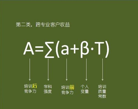 如果是数学、物理或其他正紧密结合IT的近亲学科,∑将大于1,学生客户获得超过自身条件和努力程度的收益;如果是环境、文学、历史这类远亲学科∑数值会低于1,学生必须付出更多的努力才能获得等效的收益。