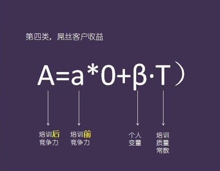 屌丝客户的竞争力变化,他们培训前的经历对培训后几乎无影响,所以a乘以0。达内的课程统一的情况下,其获取的收益完全取决于个人的努力程度。