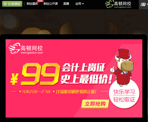 高顿网校主要提供财经在线教育,涉及会计职称、会计从业、证券从业、期货从业、银行从业等课程。(多知网 任悠)