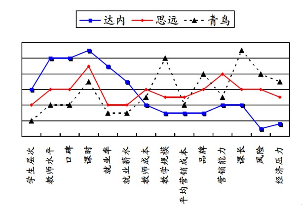 正如价值创新是蓝海战略的基石,对于目标客户对就业和培训风险(IT培训行业的良莠不齐极大增加了顾客的直接购买风险和机会成本)这些关键点的重视,达内以“强大的师资”和“就业后分期付款”来积极响应。与之配套的是,通过远程同步教学,在不影响客户最关注的核心价值点的同时,降低了教学成本。