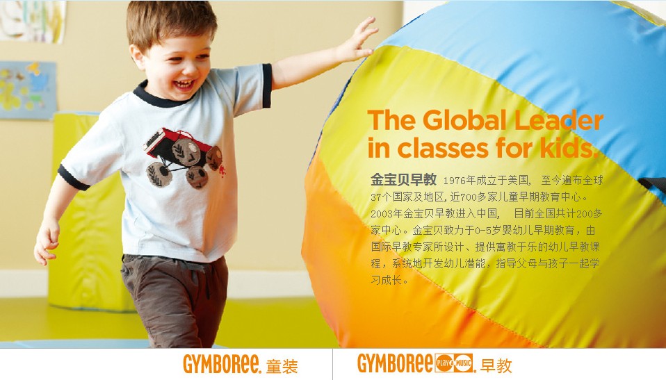 金宝贝1976年成立于美国加州,目前在全球41个国家和地区拥有700家早教中心,以加盟为主。2003年进入中国,开设了200多家中心,为0~5岁幼儿提供娱乐、音乐、艺术等内容的早教课程。