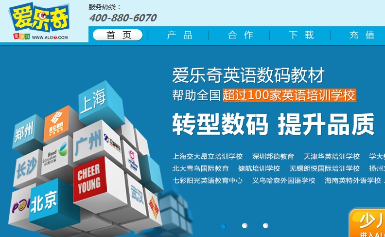 上海爱乐奇网络科技有限公司目前开发运营两款旗舰少儿英语学习产品:“爱乐奇英语数码教材”和“爱乐奇英语学习网站”。 目前已有数百家少儿英语培训机构、公立小学、幼儿园使用爱乐奇英语数码教材,客户包括新东方、学大教育、 昂立教育、邦德教育等英语教育培训集团。而在爱乐奇英语学习网站上注册的用户超过1000万。