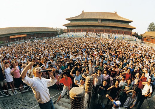 接下来,就是紧张的筹备和宣传,举办了举世闻名的“李阳—疯狂英语故宫万人大演讲”。那张以后用的最广泛,给人留下最深刻印象的李阳面朝太和殿,张嘴大吼,后面上万人和他一起疯狂喊叫的照片,就这样出炉了。