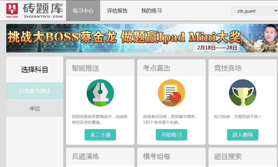 还有一种就是短平快的刺激,比如现在砖题库的竞技练习,20道题,16分钟,就是一个很好的刺激。题目太多了,就会觉得疲了;题目太少又没有考试的感觉。