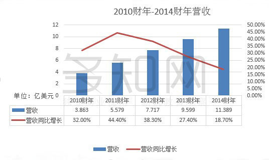 营收 11.389亿美元,较上一财年的9.599亿美元增长18.7%。
