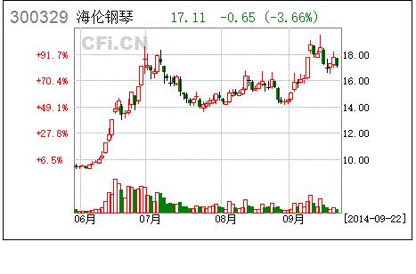 有调查指出,目前我国艺术培训领域的人群仅占总人口的2.5%,远低于发达国家20%的渗透率,随着素质教育的重视,预计到2016年,素质教育的规模约为2644亿元。而随着海伦钢琴向艺术培训方面的转型,其股价也出现了疯狂连涨,其中18天内累积涨幅达99%。