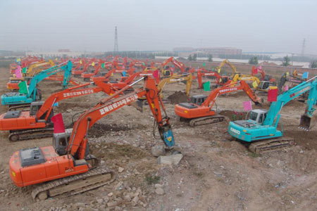 在蓝翔工程机械实习基地,记者却并未见到这番景象。300亩的基地,地面泥泞崎岖,环境破败,四周还散落着废弃的鱼塘和猪圈,与其说是一个校区,倒不如说是一块工地,数百台挖掘机散布在场地上,两三名学生随便地坐在空地上百无聊赖地聊着天。