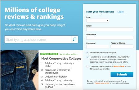Niche是一款针对于 K12 领域的学校和教育机构的信息平台类产品。它为学生和家长提供全美超过 120,567 家学校的信息,与他们的竞争对手(Great School和学校官方网站)不同地方在于平台上绝大部分的信息来自于学生和家长的视角。在创始人 Rush 看来,这些来自于学生和家长反馈的价值更为巨大,因为它们能够告诉你在这所学校读书究竟是什么样的一种体会。