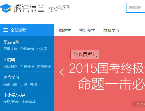 腾讯课程于今年4月25日上线,由腾讯的社交网络事业群(SNG)推出,依托于QQ群。自上线以来,QQ一直在向腾讯课堂导流,包括QQ群推出“找课程”功能,用户报名课程后,QQ会进行提醒。此外,腾讯课堂还在一些与教育机构、学习、夏令营有关的QQ群中推广“腾讯课堂”链接。