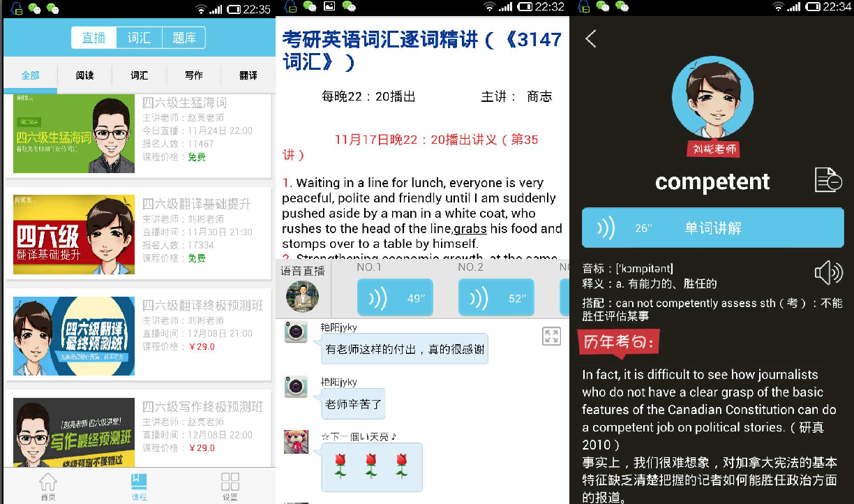 刘彬和他的团队最开始对于音频产品并没有抱有太大的期望,他们在原来积累起来的用户 QQ 群里小范围地测试了这样一种课堂形式。老师在群里发一张简单的讲义,然后通过语音功能,为学生讲解四六级过程中所遇到的难点。非常意外的是,这种形式得到了学生们的良好反馈,越来越多的人开始喜欢这样一种类似微信语音交流的方式。因为这保证了即使在极为简陋的网络环境下,学生仍然能够获得这些课程培训。