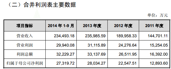 招股书披露,晨光文具在2011 年度至 2013 年度的营收分别为14.47亿元、19.00亿元及 23.59亿元,2014年1-9 月营收为23.45亿元。其中,2012年度及 2013 年度分别较上年度增长 31.28%及 24.23%。