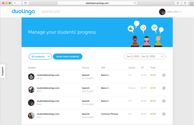 已经有很多教师使用了该服务,他们很高兴能获得这些学生学习的数据报告。有了教育版Duolingo,教师们能更容易地将该服务整合到他们的教学计划中,当作作业来安排或给在课堂外使用该服务的学习额外加分。