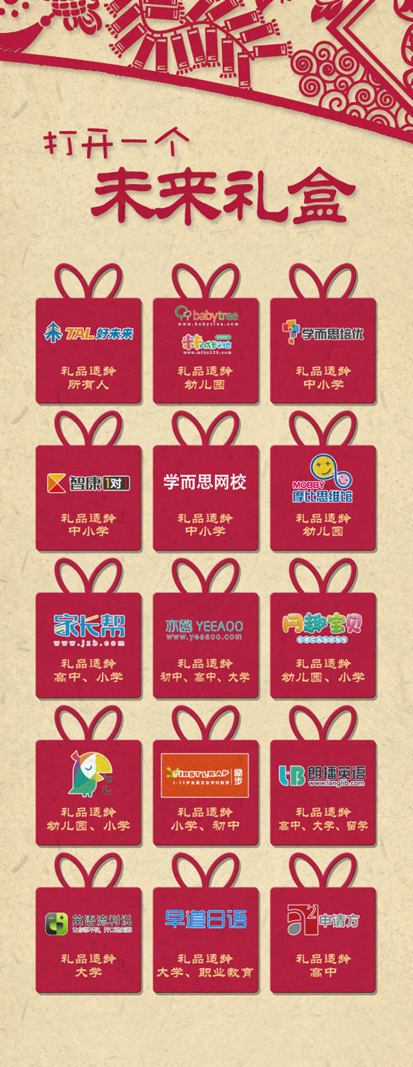 多知网2月12日消息,接近年底,在微信、支付宝、QQ、微博相继开始加入发红包大战之时,好未来联合旗下事业部、已投资企业,将于16日推出类抢红包营销H5页面。