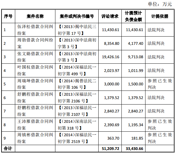 公告显示,*ST新都目前尚存已披露未解决的违规担保和违规债务诉讼9笔,并已根据司法判决和诉讼请求计提3.34亿元的预计负债。债明细如下: