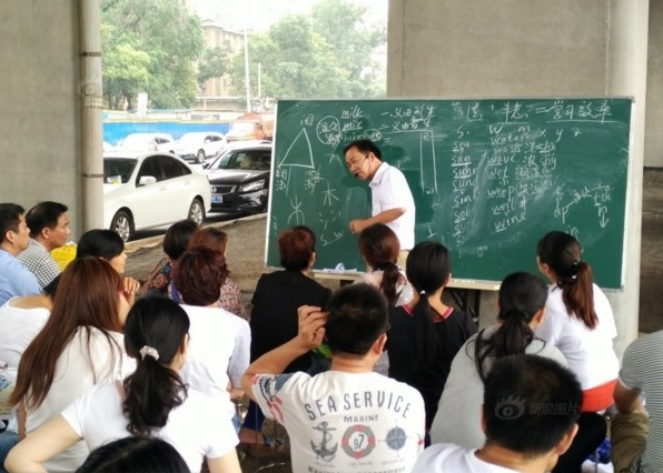 多知网6月30日消息,近日,河南省郑州市一家私人培训机构在高架桥下开设小升初培训班。家长扎堆坐板凳听课。