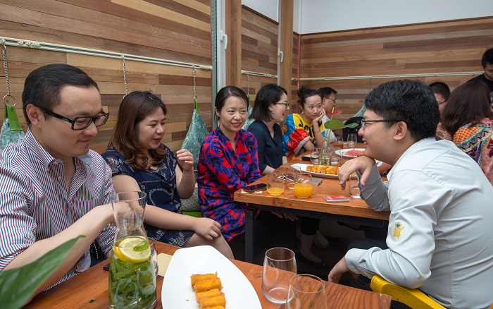 端午节前, “在行”与MOOC学院团队一起组成的“果壳教育”,搬进了新的办公室。洗手间里还是毛墙毛地,出口的玻璃门上贴着蝴蝶型的复古世界地图,“小蛋”空气净化器在安静运行。