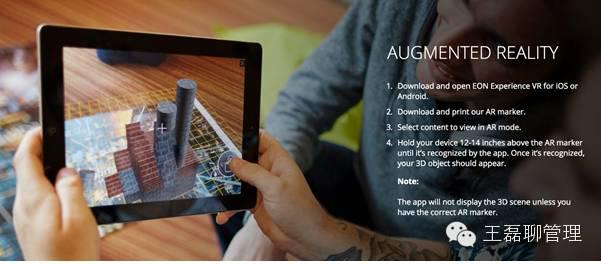 EON Reality 是一家在加利福尼亚尔湾的世界领先的交互式三维视觉管理和虚拟现实软件供应商。支持超过30种的VR/AR设备,全球设有22处发展中心,支持超过7000款VR/AR的应用软件,目前拥有3600万的用户。