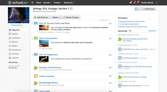 最初Schoology和K12学校合作,但很快就扩张到了大学。Schoology帮助老师在平台上开发课程,分享给学生。除此以外,它的所有课程都传到云端,超过130个国家约1200万用户都在使用。Schoology还允许第三方在网站上搭建应用,以此整合各个学校的课程,避免学生家长需要使用不同的软件登陆各种账户。