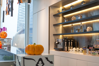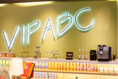 VIPABC的另一个茶歇间,每天提供咖啡、零食、水果等,亮点是吧台下整整齐齐摞了两层的各种口味的康师傅方便面,这里是24小时运行的VIPABC的“弹药库”。