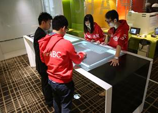 VIPABC悬浮会议室,这里没有椅子,目的是让员工在开会的时候尽量缩短时间,速战速决。