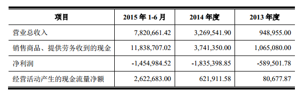 艾的教育在2013年、2014年及2015年1-6月的营收分别为94.90万元、326.95万元及782.07万元。具体数额如下表所示: