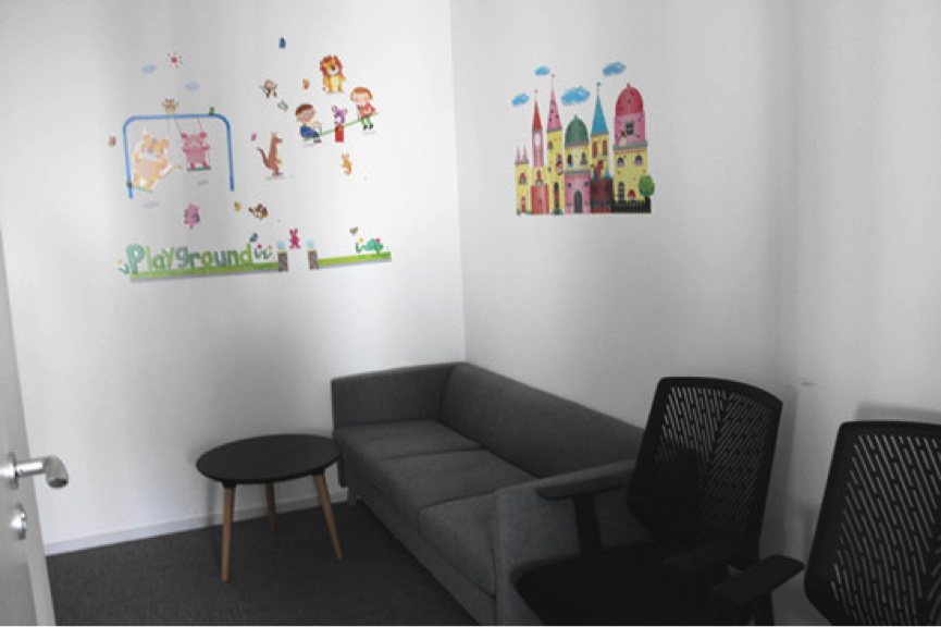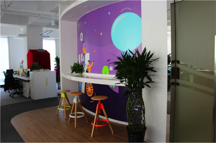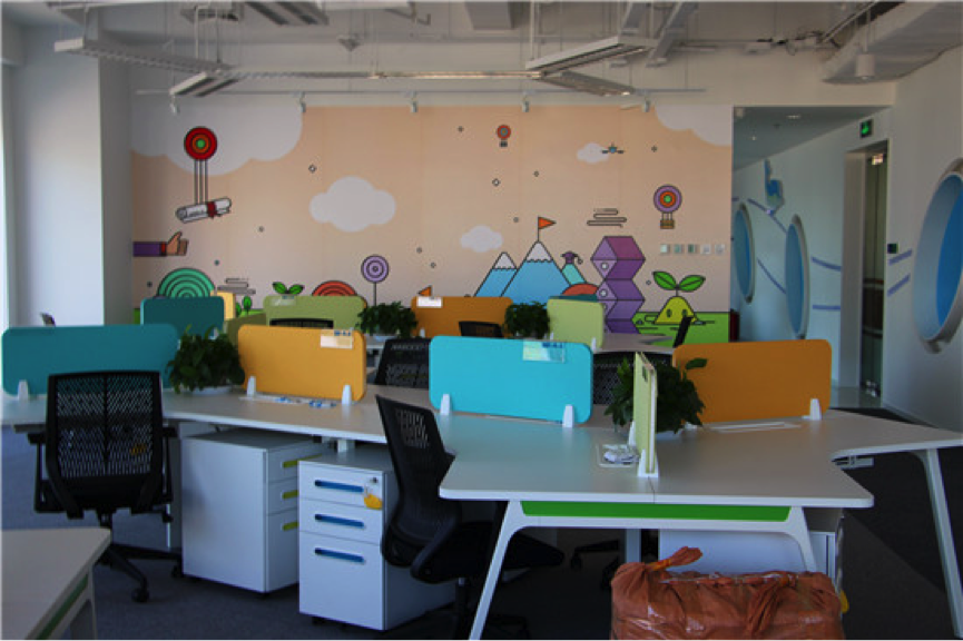 看着色彩明艳的卡通墙,人的身心的紧张感瞬间放下了,抱着轻松从容的心态谈工作,想必效率更高吧。