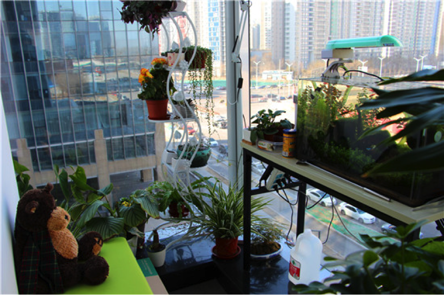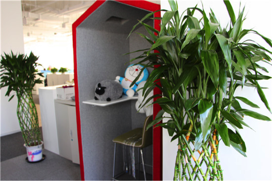 “公司给每个人200元钱,用于布置个人工位。这个角落是我们公司的‘司花’布置的,各种花和鱼,小巧精致,简直是公司里最美的一角。”工作人员说。