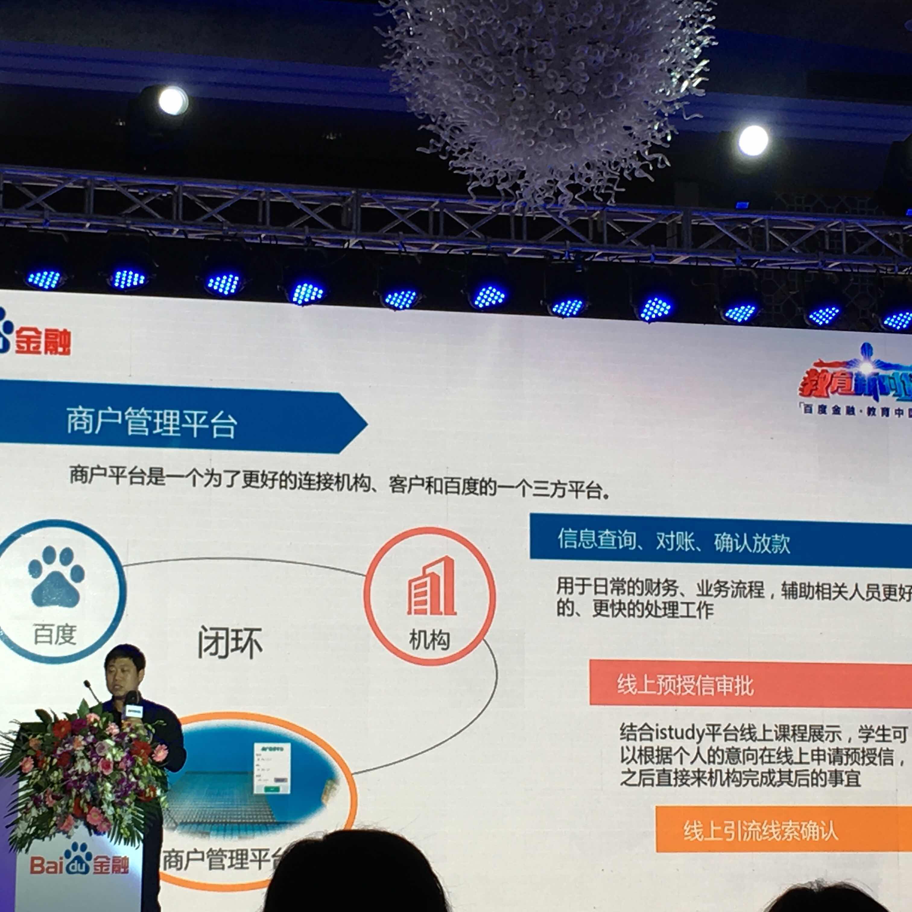 在活动现场,百度金融事业部总经理杨进介绍称,百度金融不仅为教育机构提供教育信贷服务,还为教育机构提供导流服务。百度istudy平台会免费展示机构的课程,通过百度多年积累的用户数据,帮助培训机构与学员达成培训意向,提高销售转化。