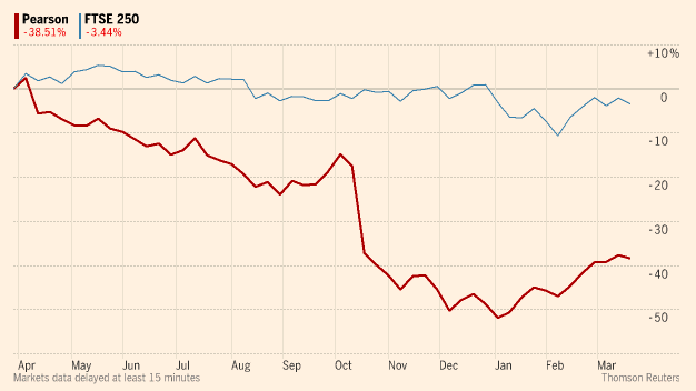 在一月份经历了一个股价最低值6.6英镑后,培生在周三下午的股价有所上涨,回升至9英镑。但是在2015年,培生的股价下跌了40%。