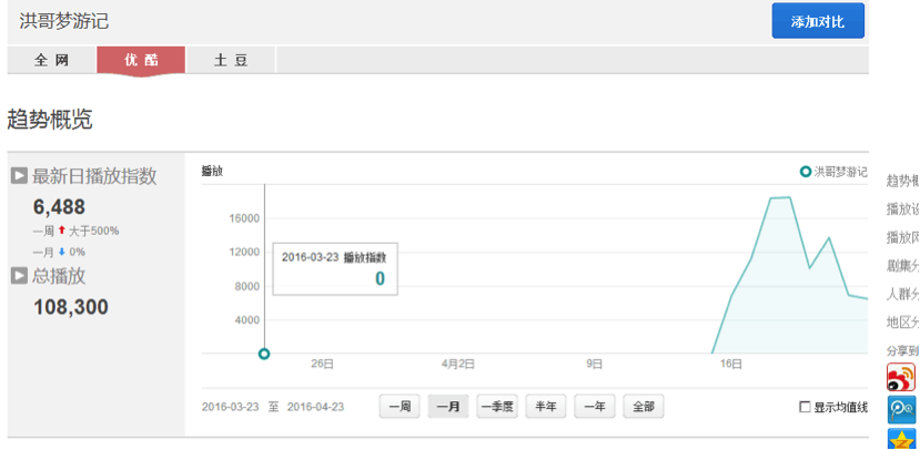 再来看一下“洪哥梦游记”在优酷视频的播放情况,见下图。