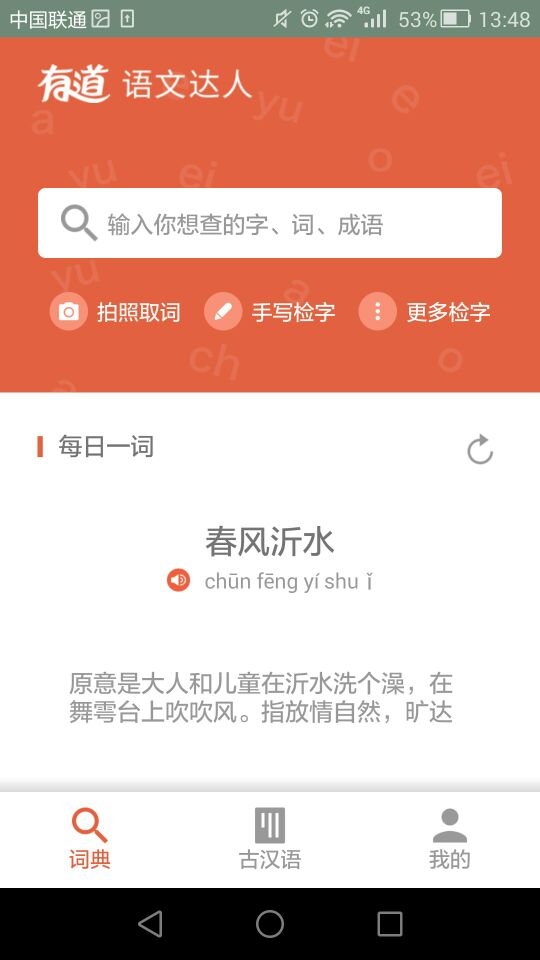 有道语文达人的前身是有道推出的汉语字典,目前,有道语文达人目前可以支持多种查询模式,当用户在语文学习中遇到生僻字词,可以通过手写、拍照、拼音、部首、笔画等多种渠道进行查询,官方称,有道语文达人收录了超过500万的字词以及课内外的古诗文。