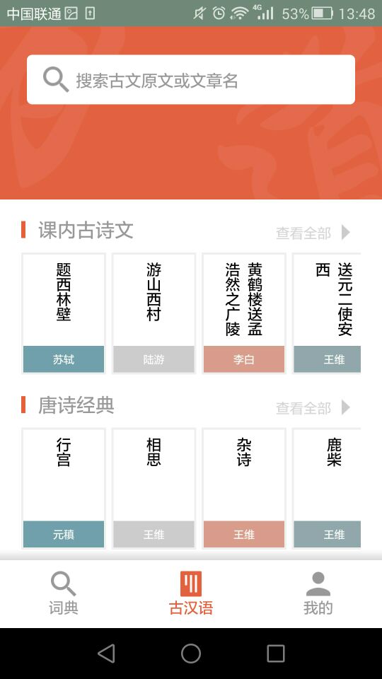 刚进入有道语文达人时,用户需要根据自己所处的学习阶段做出选择,有道语文达人主要覆盖了从小学一年级到高三的所有课内古诗文,并且为学生提供课内古文+课外拓展/中高考考点。