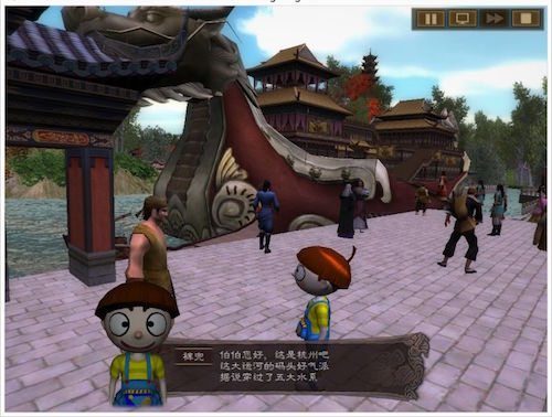 最库要做的,是将语文教学标准化。学生在游戏化的场景中,以点击等动作触发剧情,将语文的诵读等环节放到3D场景的动画中。
