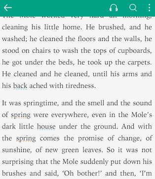 除支持单词即点即查、词典扩展包、生词与“扇贝单词”词库相关联等既有功能之外,扇贝读书还新增了“听书”功能,用户可以一边看书,一边收听英文同步朗读。
