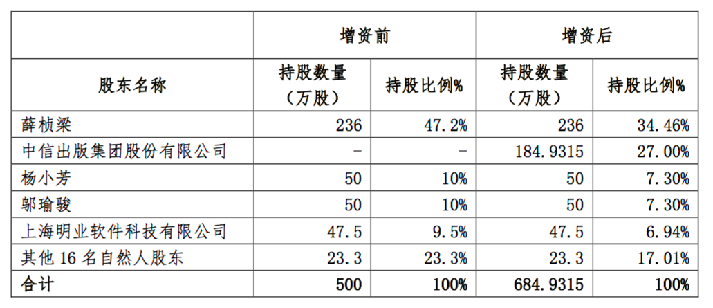 增资完成后,中信出版将持有财金通股份184万9315股,占股27%。