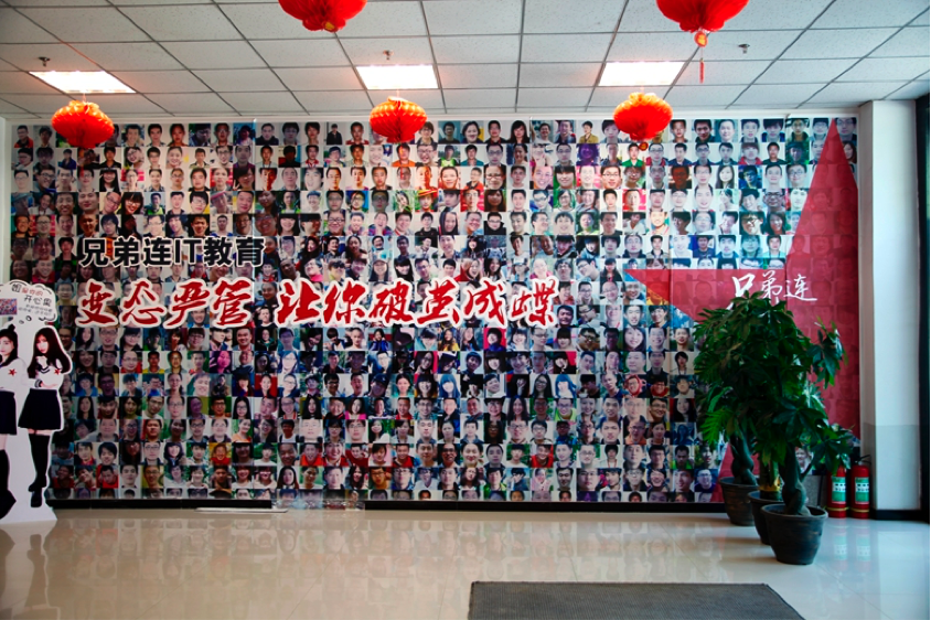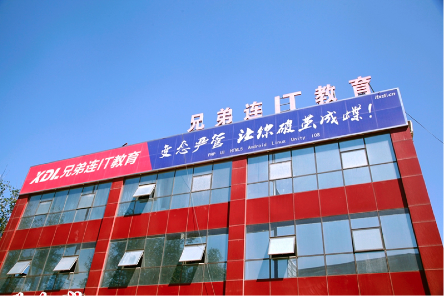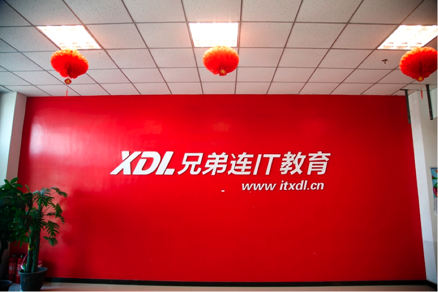进入办公楼后,左边会看到红底白字“XDL兄弟连IT教育”标识墙。