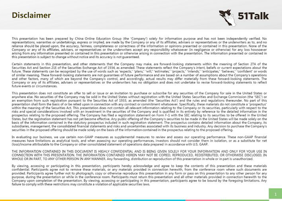 多知网6月6日消息,日前,51Talk发布路演PPT,之前,有关51Talk赴美IPO的基本财务信息等数据多知网已经做了报道,其中存在一些如亏损严重、规模不经济的问题,那么,在这种情况下,路演要怎么讲?现在多知网就带领大家看一下这份路演PPT的内容。