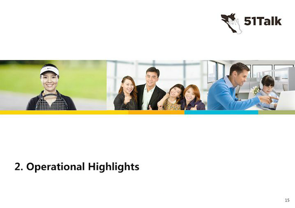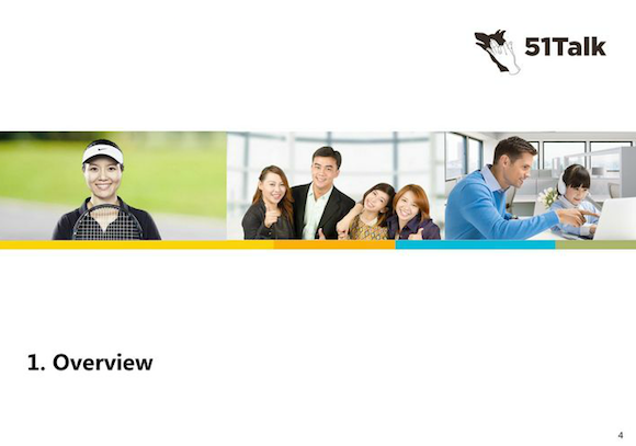 这一页和上一页讲的内容基本一样,主要传递了两个数据,一是活跃学生人数10.2万人,一个是平台上的老师6300人。值得关注的是51Talk对自己的定义,数据驱动的个性化学习。
