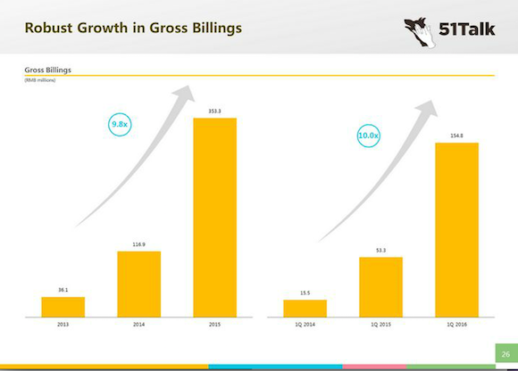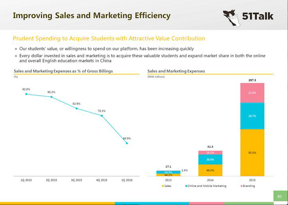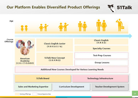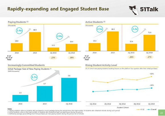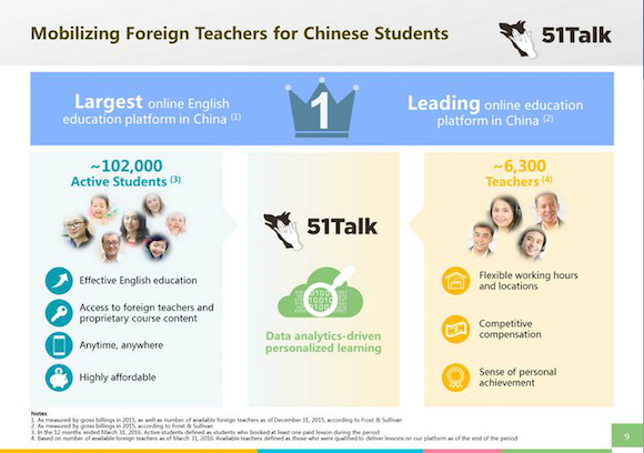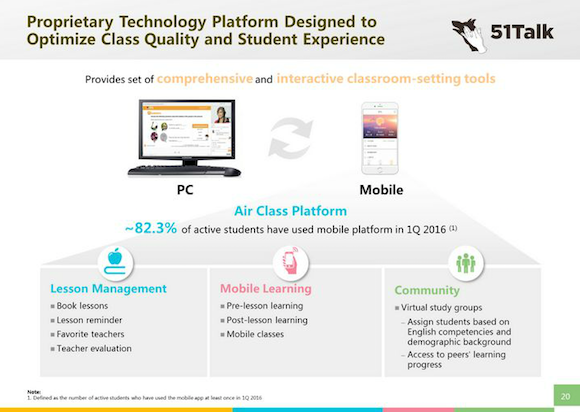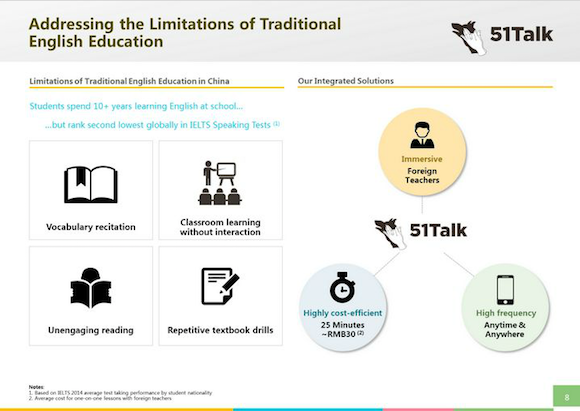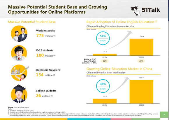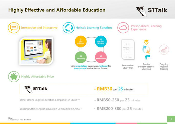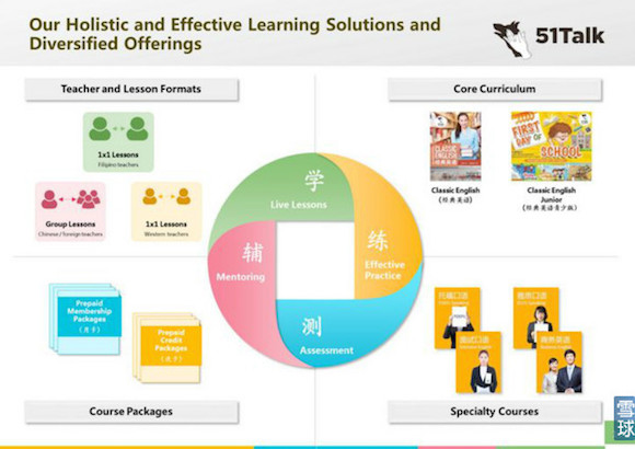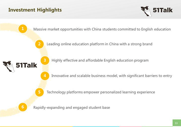 提出在线教育平台概念,并且举出阿里巴巴、携程的例子,可以看出,51Talk希望用相似的互联网产品的成功案例做概念背书。