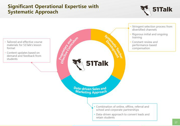 51Talk的系统性方法,主要包括数据驱动的销售和市场策略、个性化且更加有效的过程、成体系的教师培养制度。