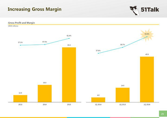 主要是四个图,展示了51Talk快速增长的付费学生和活跃人数以外,还展示了课程的单价提升和学生水平的提升。